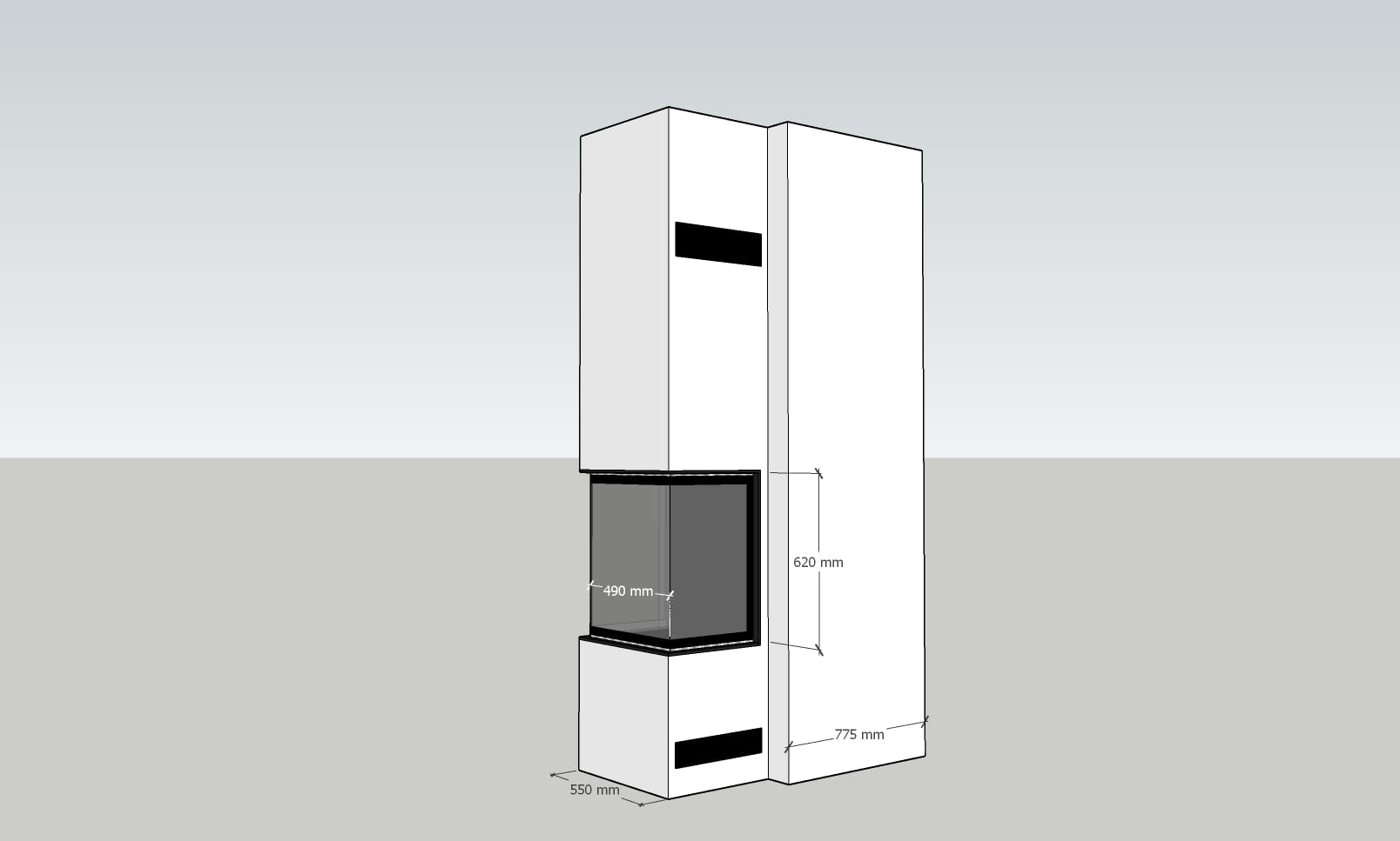 Til tross for de kompakte målene, tilbyr SLIM-modellen ett romslig forsenket brennkammer, noe som også gjør den praktisk i bruk. Det gjennomtenkte designet og den elegante finishen gjør peisen til mer enn bare en varmekilde – den blir et unikt, dekorativt element i ethvert interiør, enten det er en moderne stue eller en koselig leilighet.