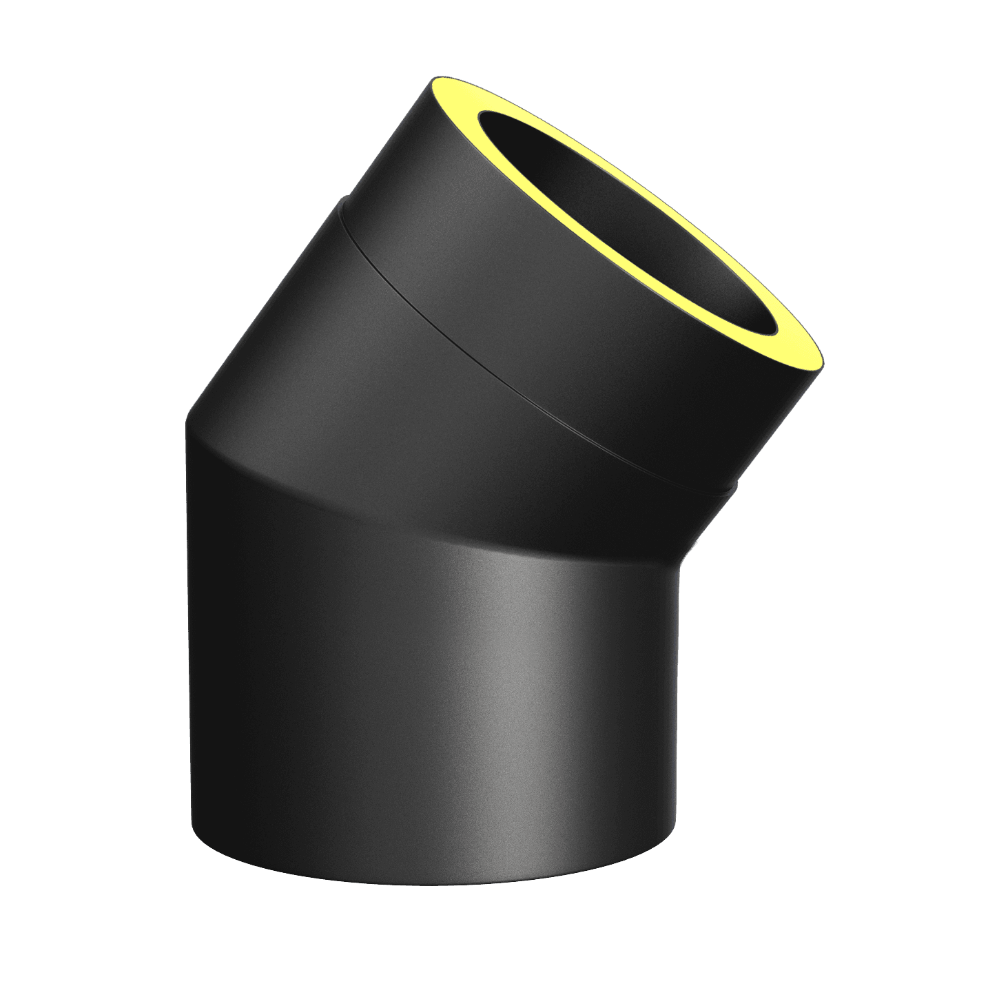Helisolert bend, ø150, 45 grader, sort lakk.