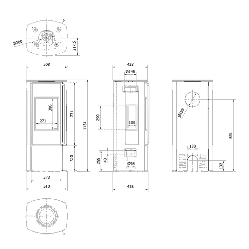 • Tresidig glass – et unikt syn på ilden forfra og fra sidene, noe som forbedrer den visuelle opplevelsen,