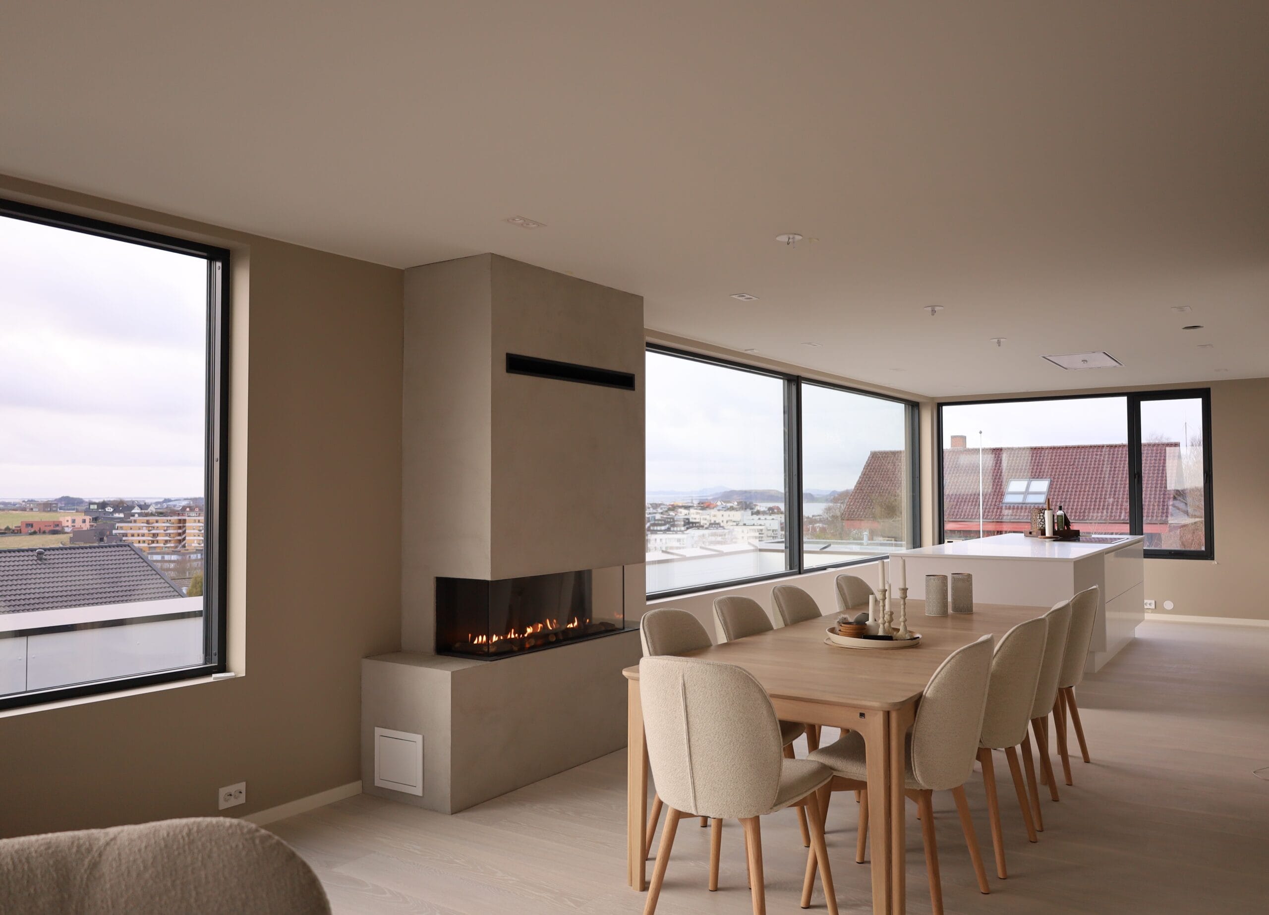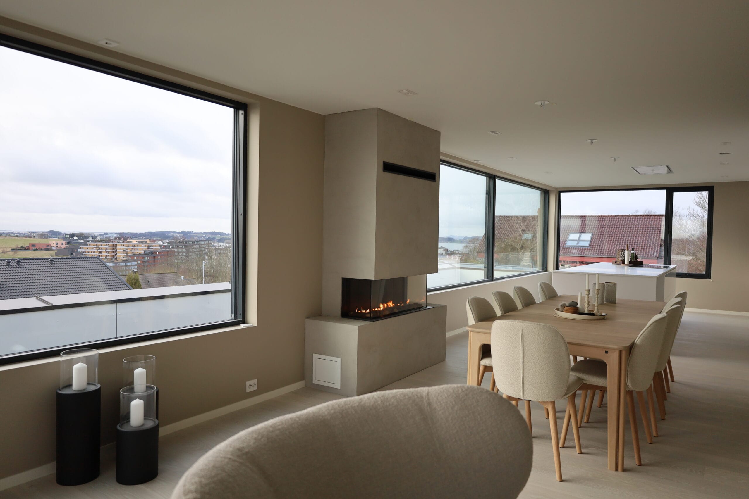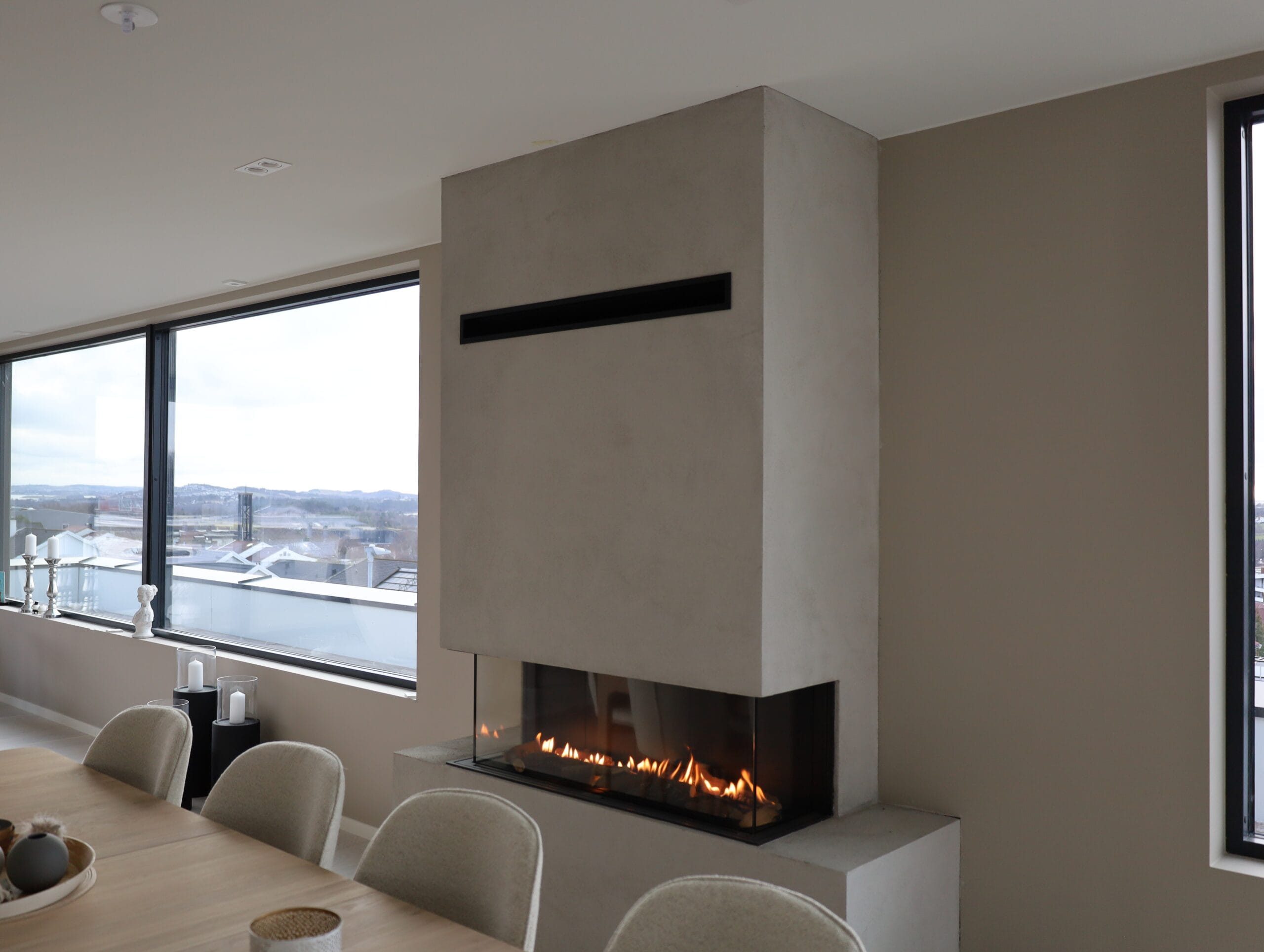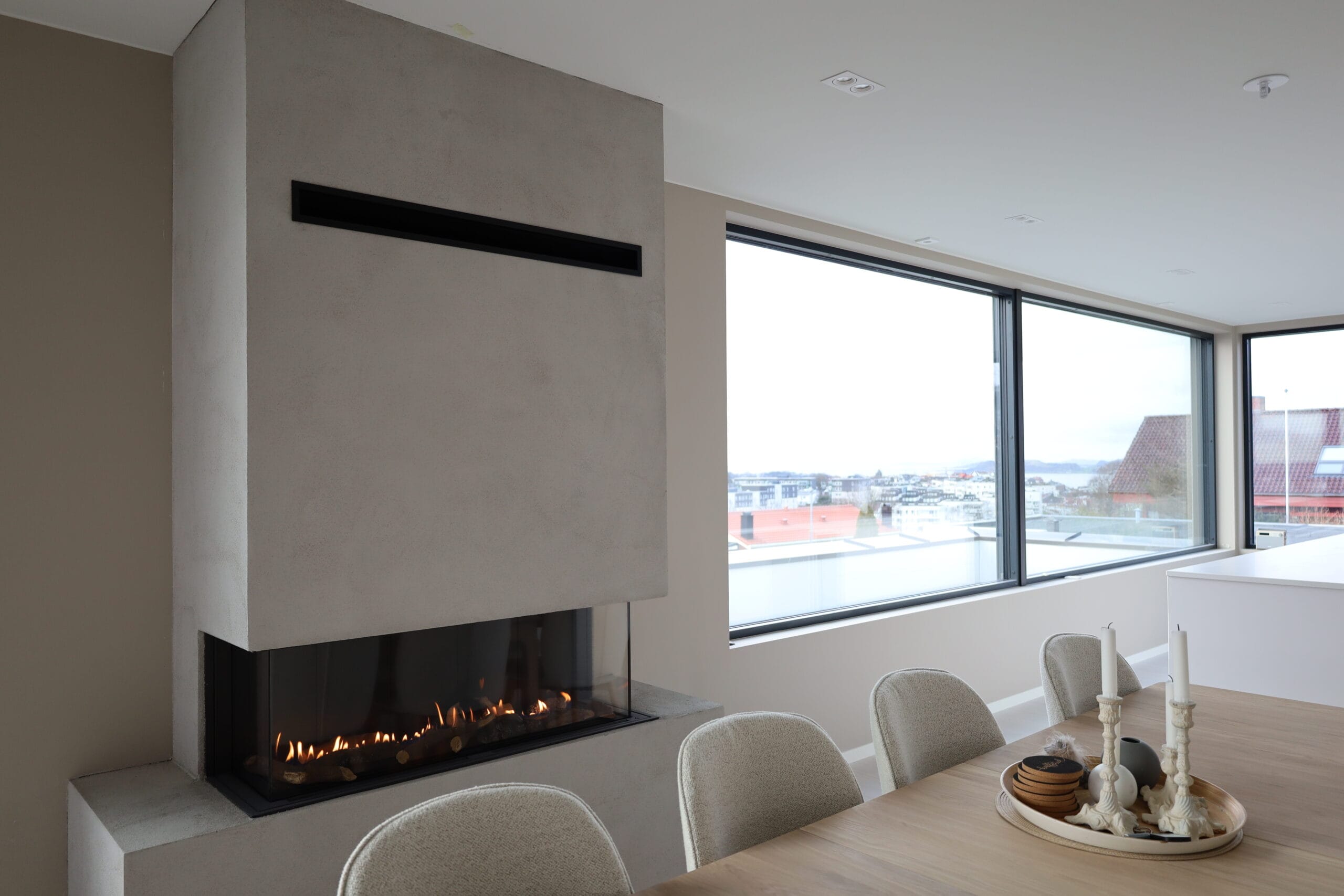 Den usynlige fasaderammen og det minimale antallet synlige stålelementer gir en uforstyrret og moderne visjon av flammene.