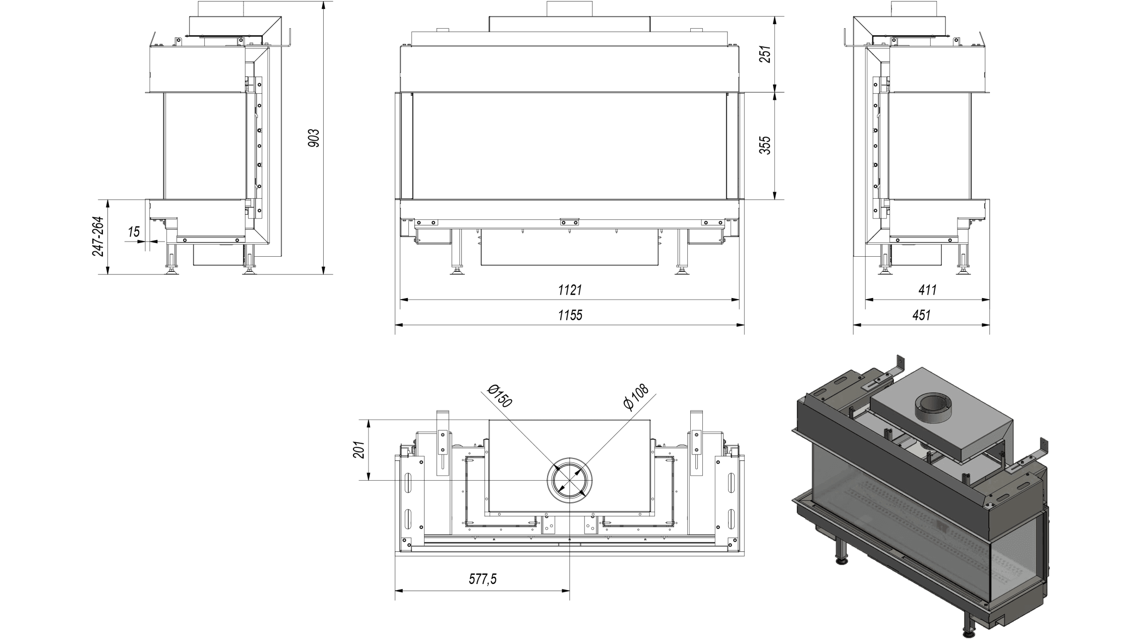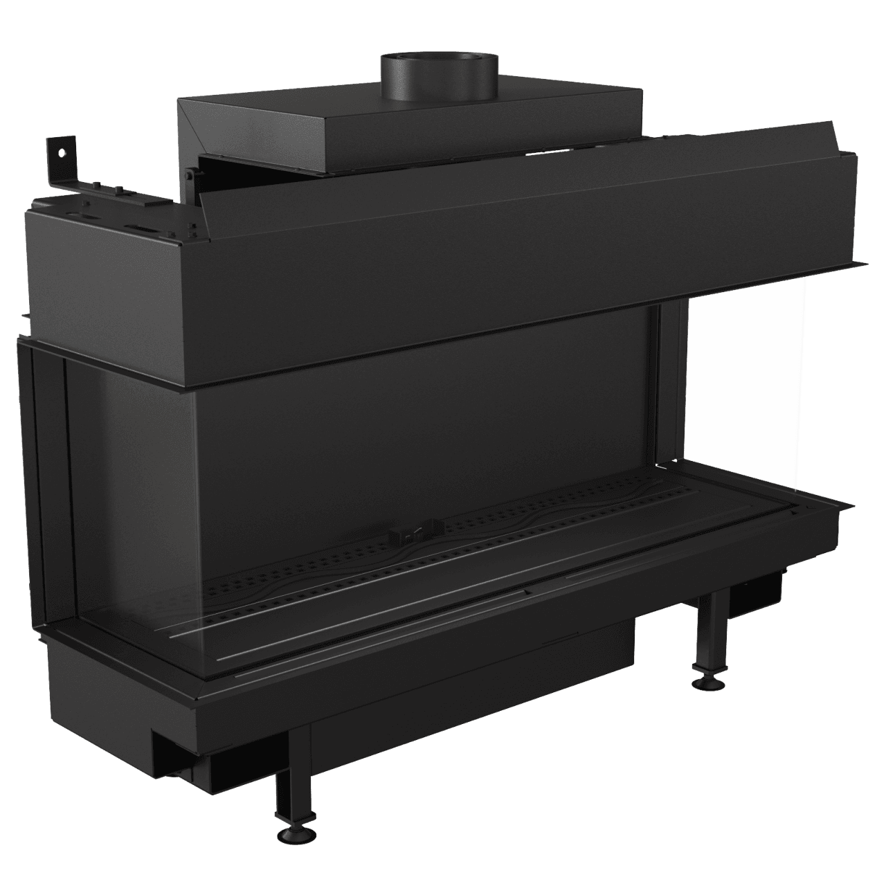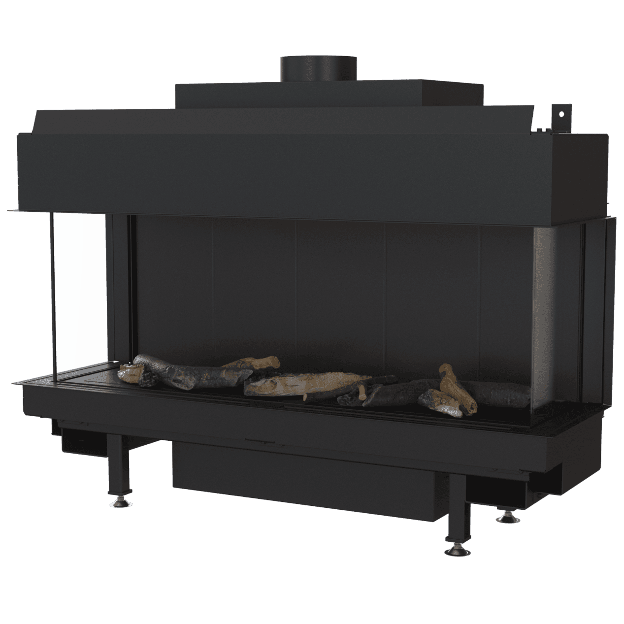 • Enkel installasjon uten skorstein: det koaksiale kanalsystemet gjør det mulig å installere peisen i rom uten tradisjonell skorstein – det holder å føre kanalen ut gjennom vegg eller tak.