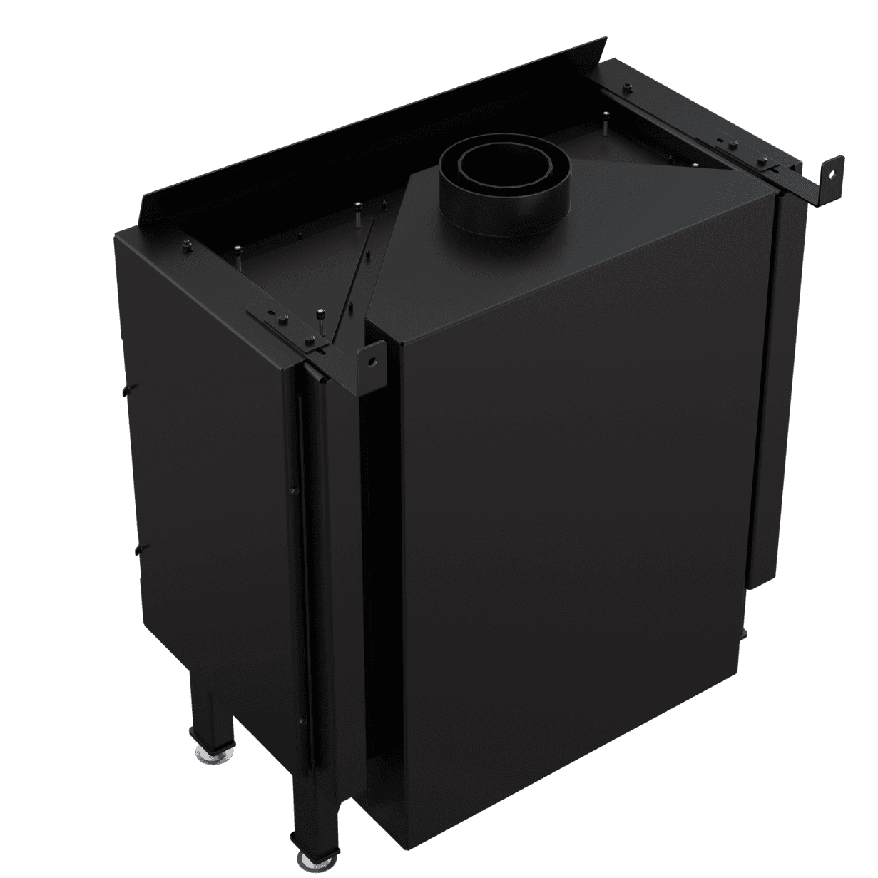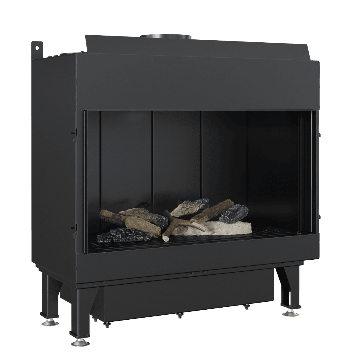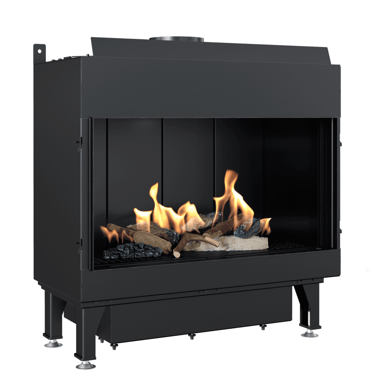 Den termostatiske fjernkontrollen gir full kontroll over flammer og temperatur. Innsatsen kan drives med både naturgass og LPG og krever ikke tradisjonell skorstein. Det koaksiale kanalsystemet gjør installasjonen enkel – røret kan føres gjennom vegg eller tak.