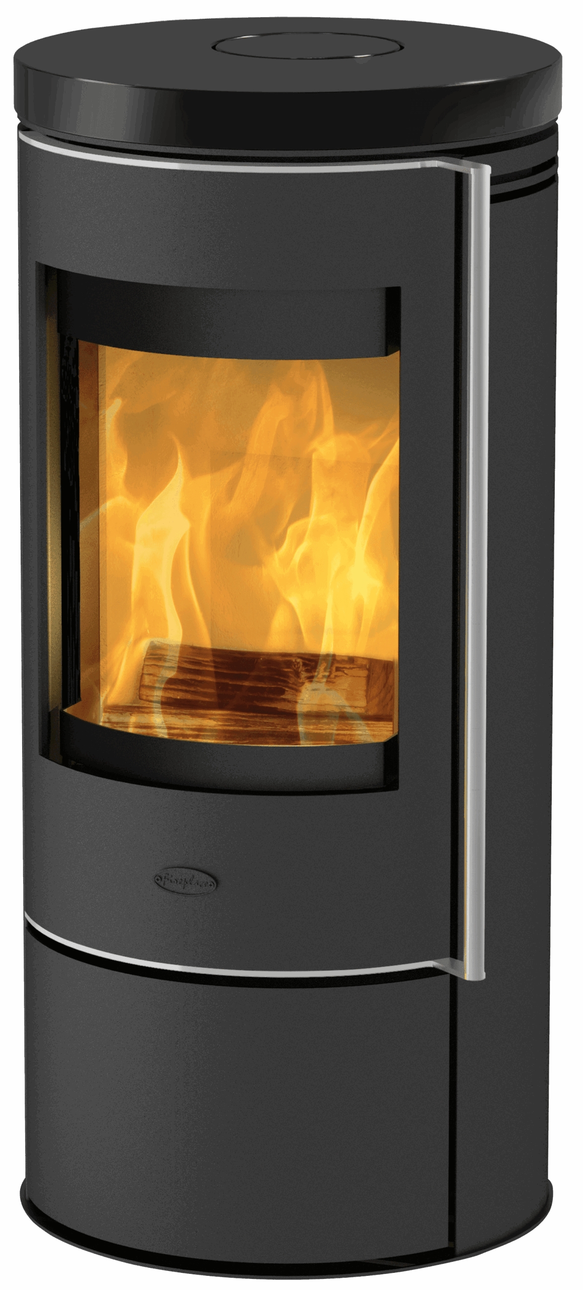 Det store, buede glasset lar deg nyte flammene fra denne flotte ovnen.