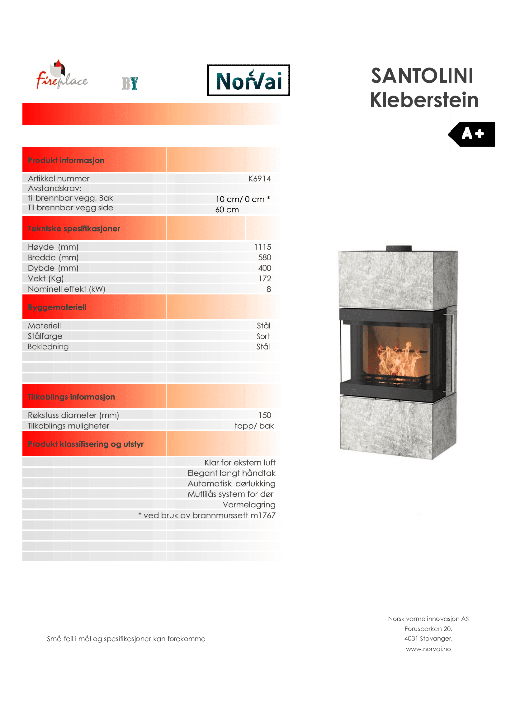 Santolini kleber skiller seg ut med sitt moderne utseende og imponerer med et ekstra bredt brennkammer. Den har et frontglass og to sideglass med et effektivt glassrengjøringssystem som sørger for klart innsyn i flammene. En kontinuerlig luftstrøm holder glasset rent og klart.